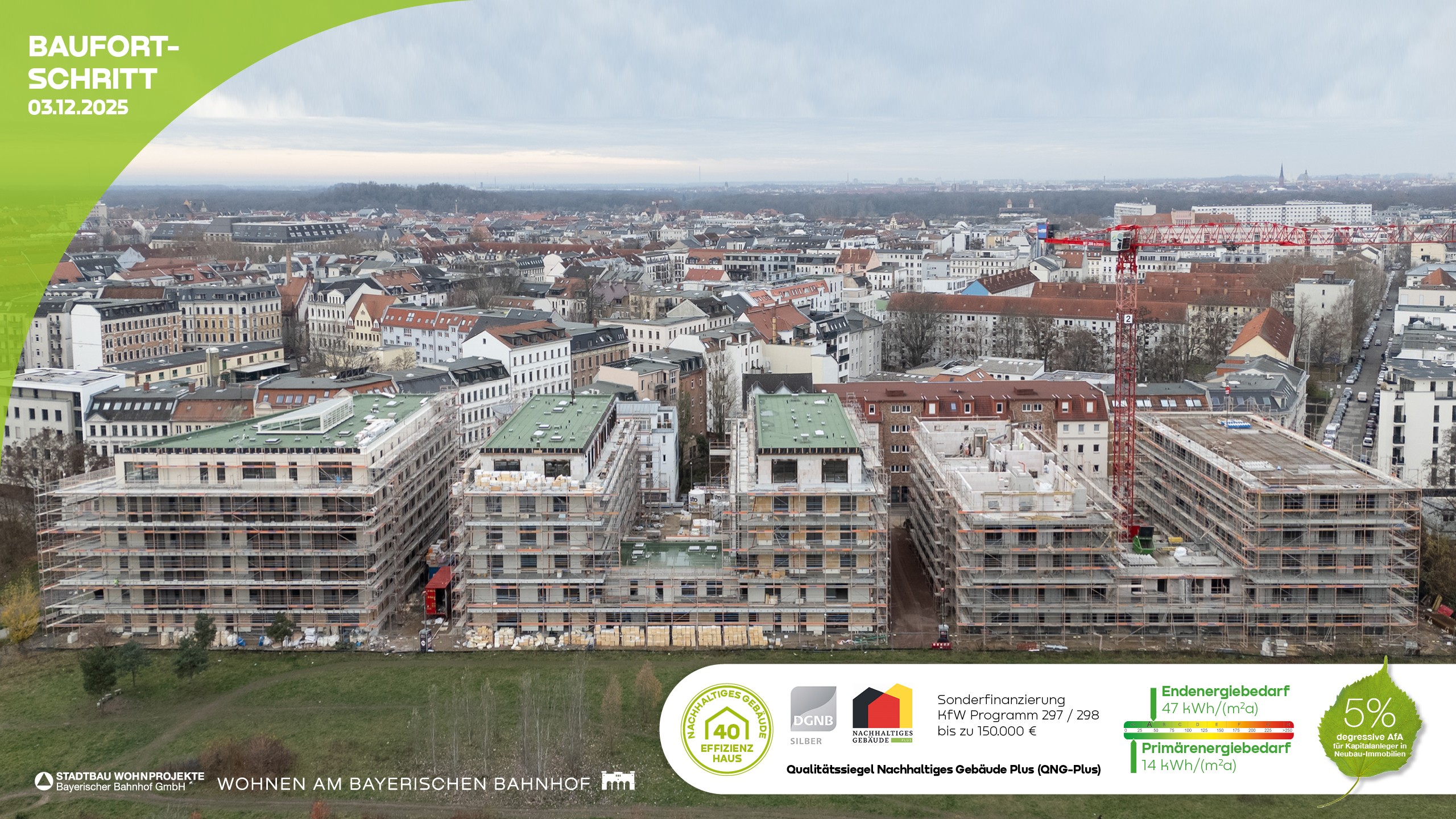 Status: beide Bauabschnitte im Bau / Haus A aktiv im Vertrieb